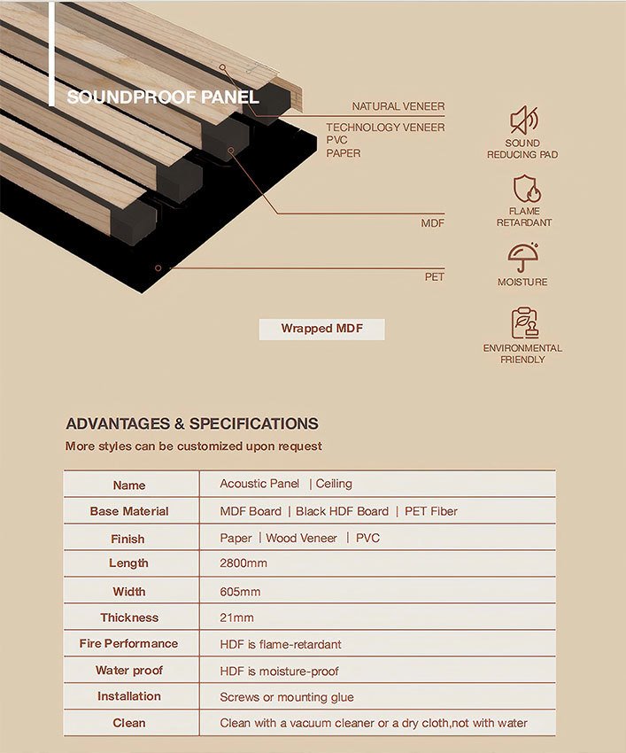Soundproof Panel is a high-performance acoustic wall panel designed to reduce noise and echo.It not only effectively absorbs sound and minimizes noise transmission but also adds an elegant decorative touch to any space.Made from high-quality environmentally friendly materials,Soundproof Panel combines aesthetics with functionality,making it an ideal choice for residential,commercial,and public spaces.Whether used in home theaters,conference rooms,or public venues,Soundproof Panel provides excellent sound insulation and a comfortable acoustic experience.
